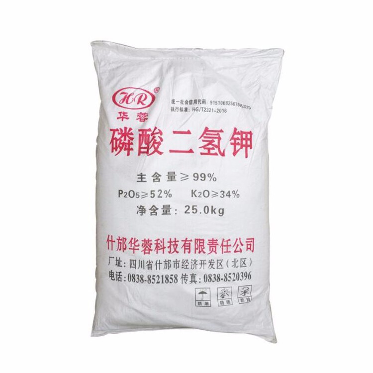 2.農業(yè)上用作高效磷鉀復合肥;磷酸二氫鉀產品廣泛適用于各類型經濟作物、糧食、瓜果、蔬菜等幾乎全部類型的作物,各省均由當?shù)氐霓r科院所、土肥站等專家機構針對磷酸二氫鉀適用于各類典型作物進行了很多的相關應用實驗,通過各地對各類型作物的實際施用效果證明磷酸二氫鉀具有顯著增產增收、改量優(yōu)化品質、抗倒伏、抗病蟲害、防治早衰等許多優(yōu)良作用,并且具有克服作物生長后期根系老化吸收能力下降而導致的營養(yǎng)不足的作用。磷酸二氫鉀屬新型高濃度磷鉀二元素復合肥料,其中含五氧化二磷52%左右,含氧化二鉀34%左右??緹熜枇住⑩浟看?,特別是需鉀量大。磷酸二氫鉀是用于烤煙的一種較為理想的新型肥料。為了探索磷酸二氫鉀在烤煙上的使用價值和施用方法,以提高煙葉品質。磷酸二氫鉀用在棉花上能夠控制棉花徒長,增加植株花苞數(shù)量。磷酸二氫鉀廣泛運用于滴管噴灌系統(tǒng)中。